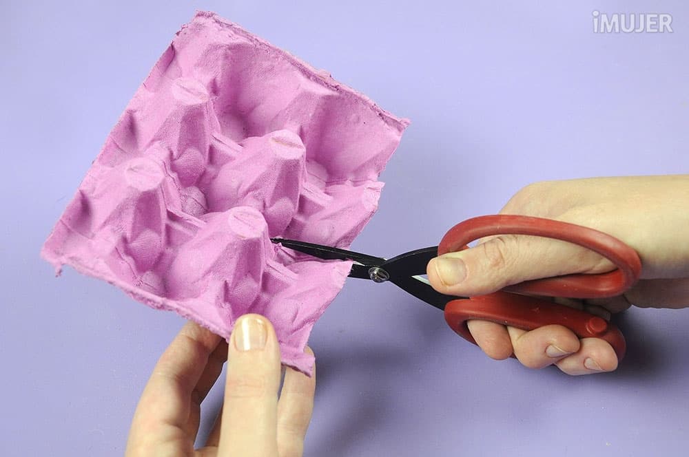 Corta todos los picos de la huevera con tijera, dejándolos como muestra la siguiente imagen.