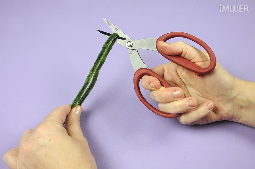 Para el tallo, utiliza un limpia pipa. Corta el largo que desees que tenga tu ramo.