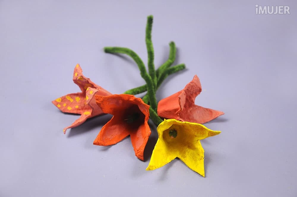 Haz un bonito ramo de flores con cajas de huevo para mamá