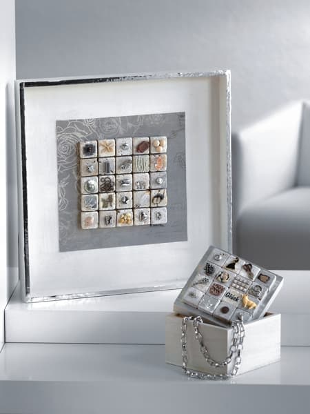 Utilizando baldosas pequeñas y objetos reciclados minúsculos puedes hacer un cuadro decorativo tan lindo como el que vemos en la imagen de femme2decotv. Se trata de una técnica australiana llamada inchi en la cual se usan variados elementos reciclados para crear un cuadro decorativo muy moderno, hecho a mano.