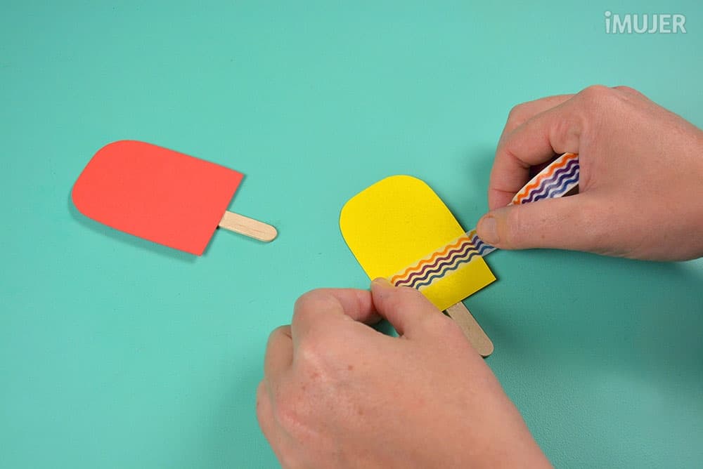 Pega el washi tape en los helados. Si tienes más de un motivo puedes combinarlos.