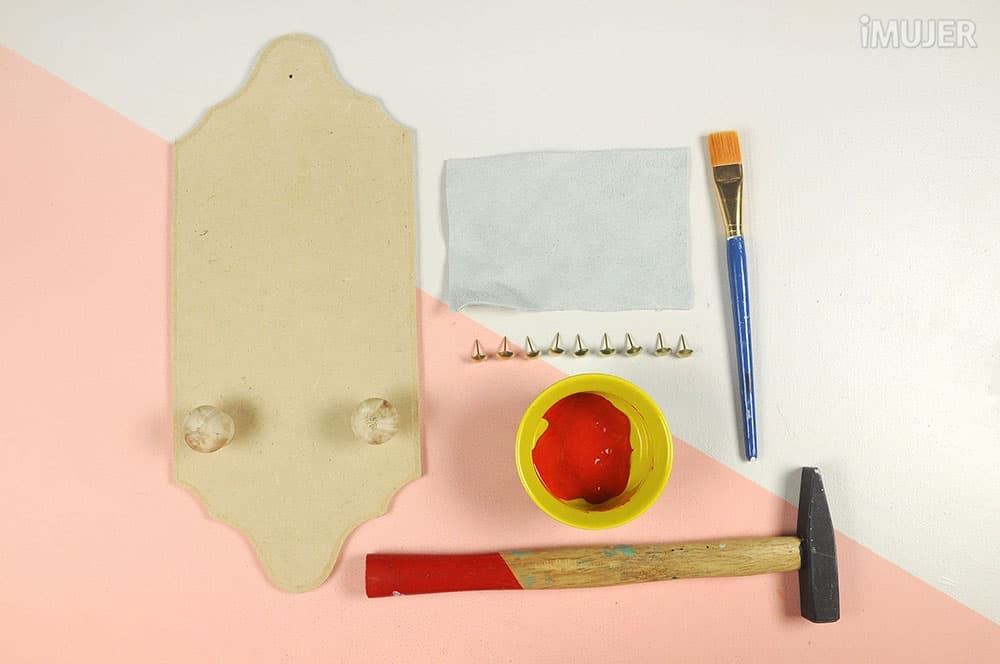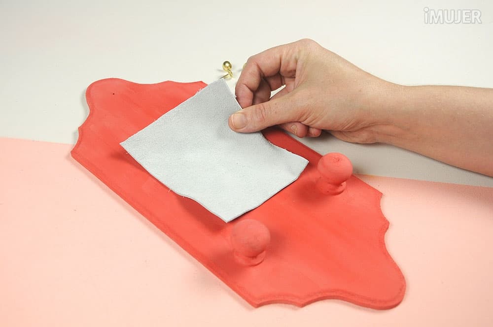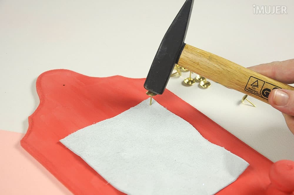 Martilla las chinchetas en la tela para afirmarla y tu perchero estará listo.