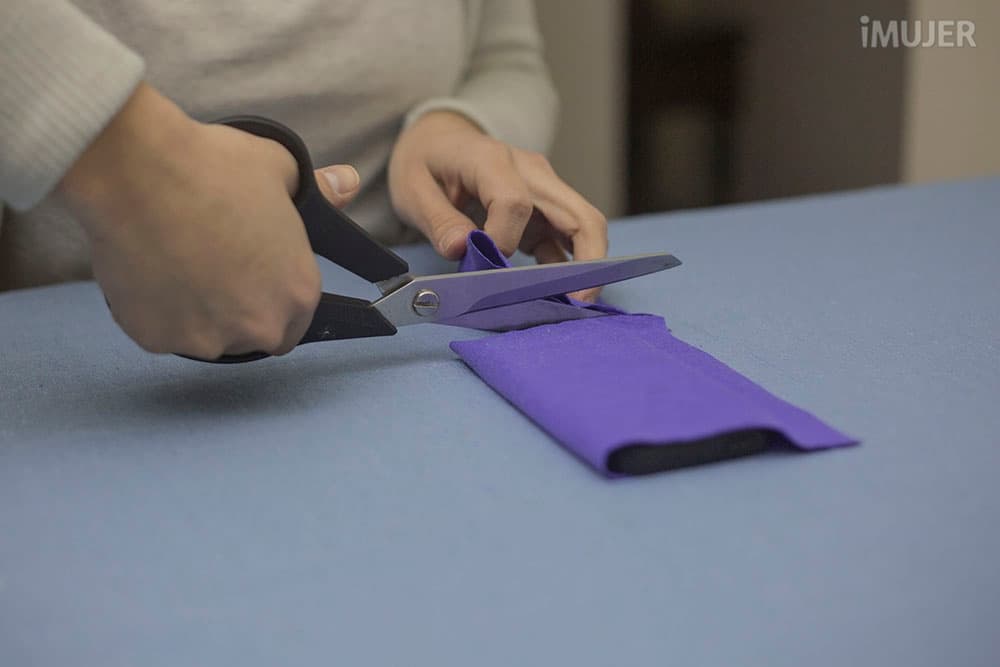 Envuelve el móvil con la tela y define el tamaño del portacelular.