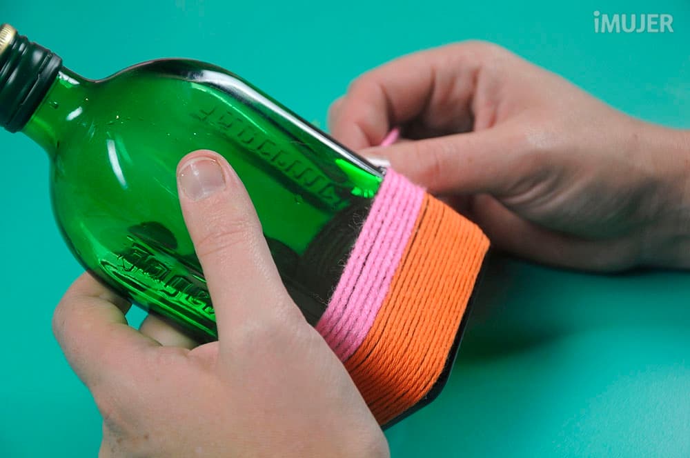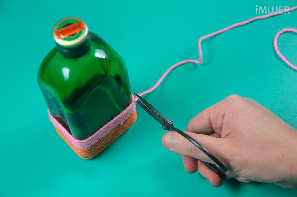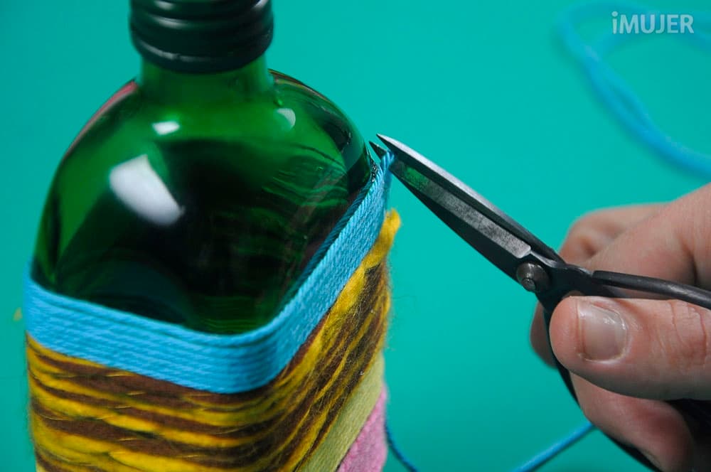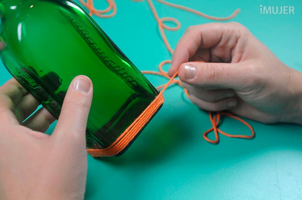 Rodea la botella con la lana.