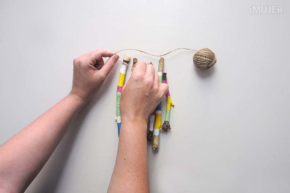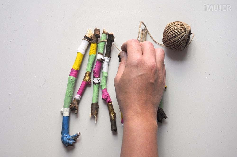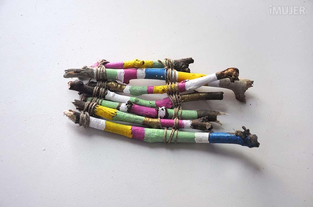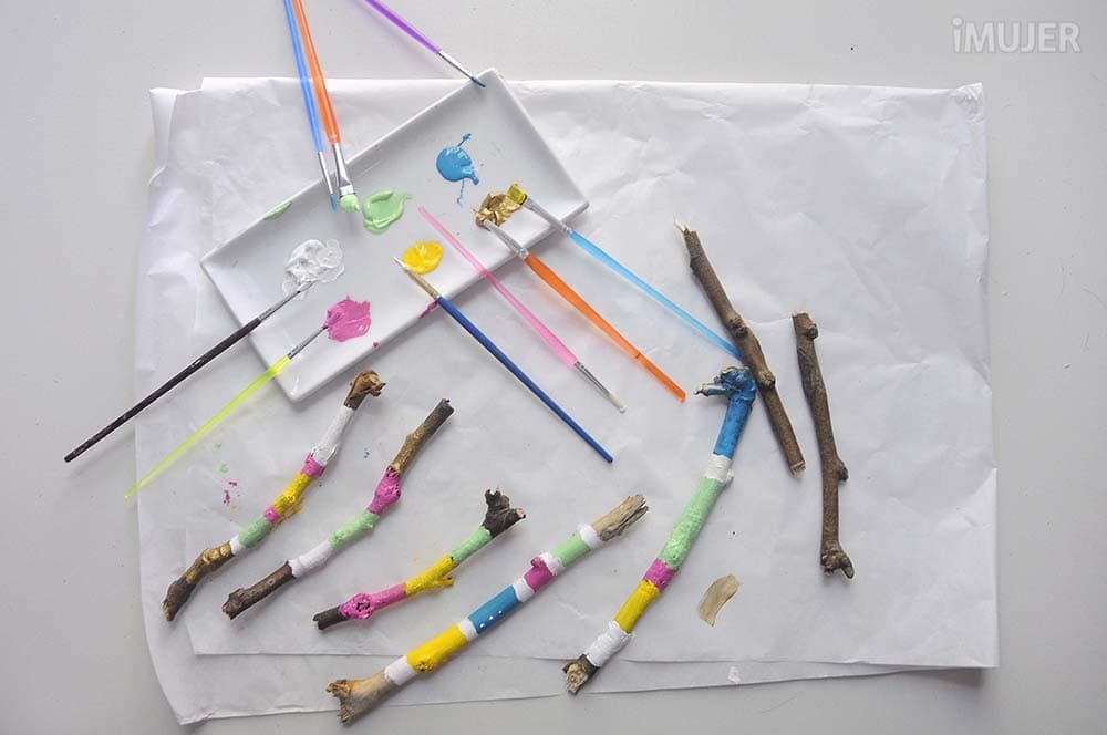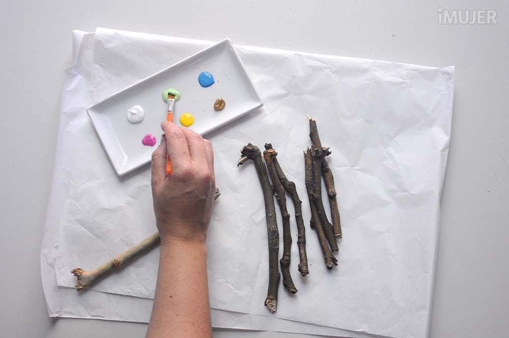 Con la pintura acrílica pinta las ramas con el diseño que tú quieras.
