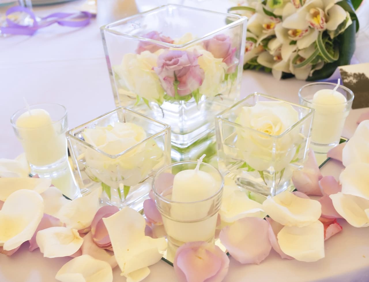 Los centros de mesas pueden ser flores, racimos de globos de colores, o adornos alusivos a graduaciones, como birretes y diplomas enrollados. También se puede recurrir a las amplias variedades de confeti y serpentinas para graduación que se consiguen en las tiendas de cotillón.