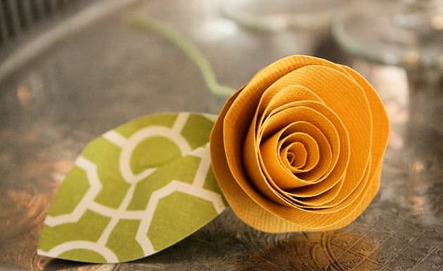 Estas flores con papel enrollado son sencillas de hacer, y por eso se pueden hacer por montones. Nada tiene de malo hacer una decoración minimalista que no requiera de esfuerzo ¿o sí? Lo que necesitarás es papel con diseño, alambre y una pistola de silicón.