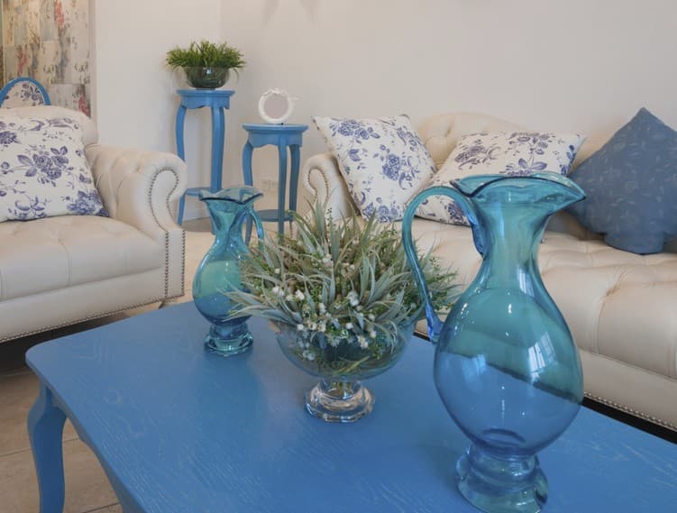 Podemos complementar nuestra sala con un típico esquinero francés, un bombé de madera fina y una mesa de centro acorde a los muebles y adornos estilo francés, como lámparas, floreros y cuadros u objetos de ornato no muy recargados.