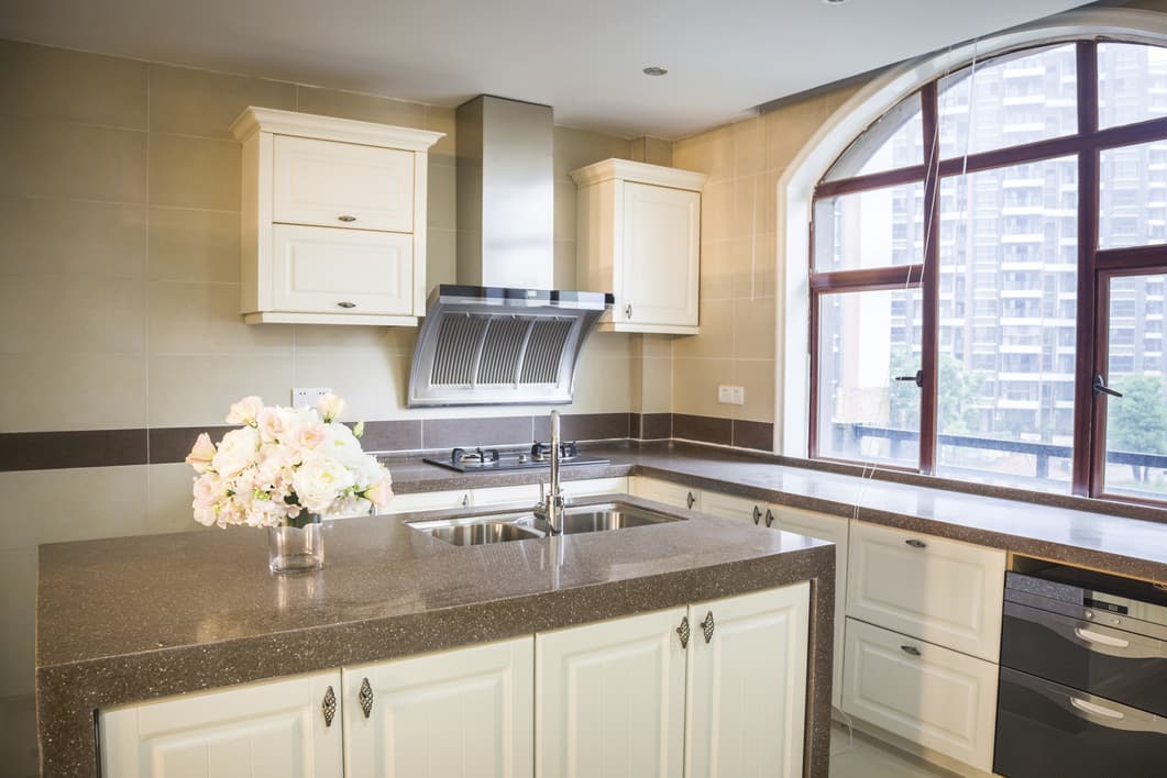 La cocina estilo francés en general es amplia y luminosa, los tonos que más se recomiendan son cremas, los marfiles, los azules y grises. Podemos usar un tapiz en tono oscuro con fondo claro. Otra característica son las alacenas, gabinetes y las mesas encimera de mármol, vidrio o granito.