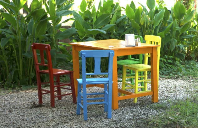 Renovar también significa cambiar de lugar. ¿Qué tal si quitas la mesa de la cocina y la pones en el medio de tu parque? Si te gustó la idea, deberías proteger la madera o el metal con una pintura para que no se arruine a la intemperie. ¡Acuérdate de elegir un color llamativo para darle vida al jardín!