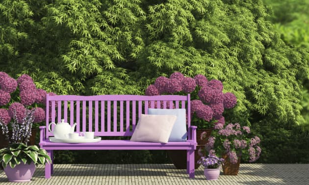 Deja que los colores de los almohadones te inspiren para pintar aquel banco gastado y viejo que está en el fondo de tu jardín. Cuando vayas a pintarlo, acuérdate de lijarlo bien y quitar todo el polvo que se acumula en la superficie de los muebles de exterior. ¡Tú puedes!