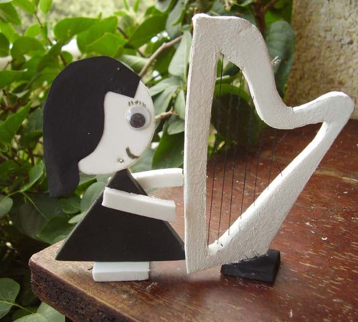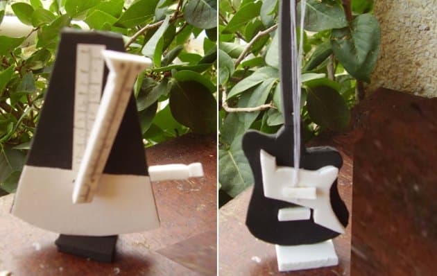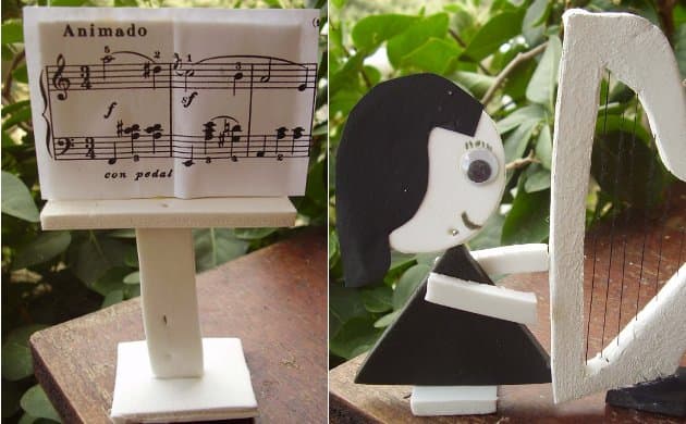 Para los instrumentos musicales de foamy como el atril, la guitarra y el arpa necesitarás algunos materiales adicionales; un poco de hilo, una partitura y ¡listo! Y colocarlos será muy sencillo, ya que puedes utilizar cualquier pegamento que tengas en casa.