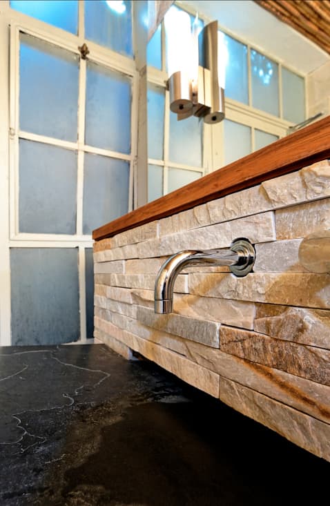 Hay muchas piedras que se usan para crear estos lavabos, desde mármol, granito y otras menos comunes, dejando una superficie tan perfecta como la del tope de una cocina, viéndose sólido y hermoso. Normalmente se usan poniendo sobre una superficie y no empotrado para apreciar más su forma y diseño.
