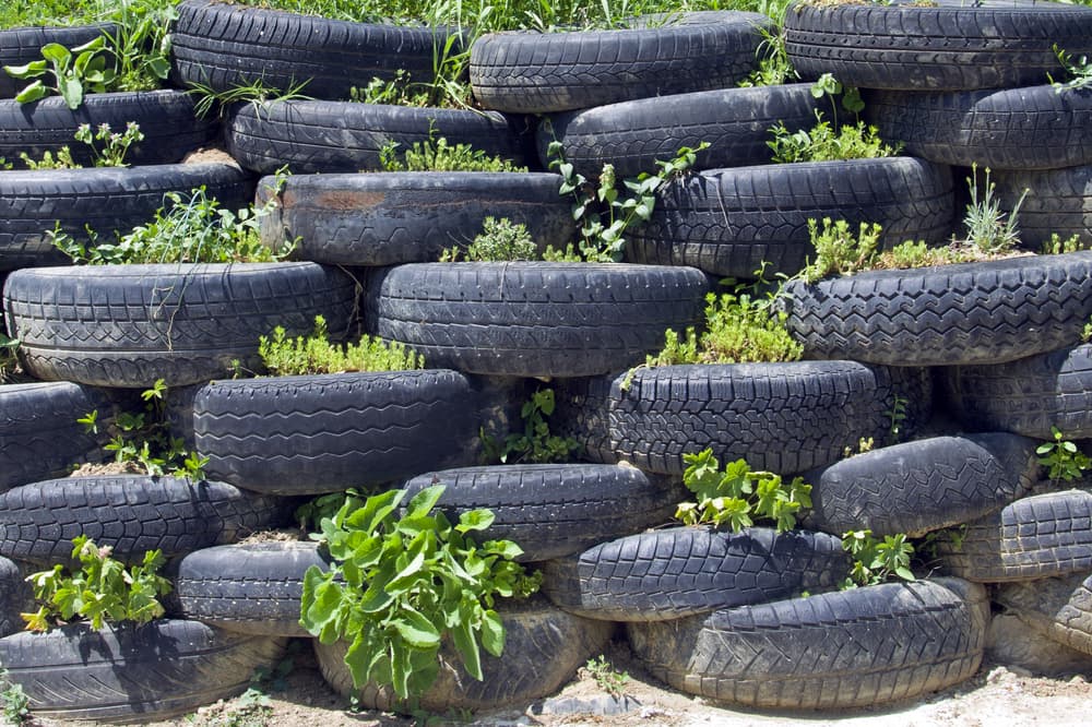 Esto es lo máximo en reciclaje de macetas: un jardín vertical realizado íntegramente con ruedas de auto. Si esto no es reciclar, entonces no sé que decirte.