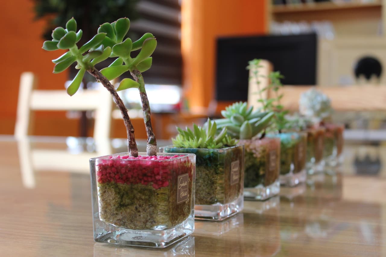 Un vaso de los de whisky también es una excelente idea para realizar mini macetitas y colocar plantas de tamaño pequeño (por ejemplo un cactus). Son perfectos para poner en el escritorio o en una ventana.