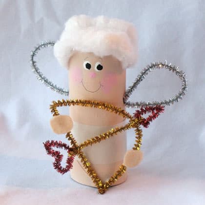 Coloca sobre el rollo de papel una buena cantidad de algodón, y pégalo con un poco de pegamento. Realiza también la cara de nuestro adorable cupido utilizando todos los colores que necesites, y realizando una adorable terminación.