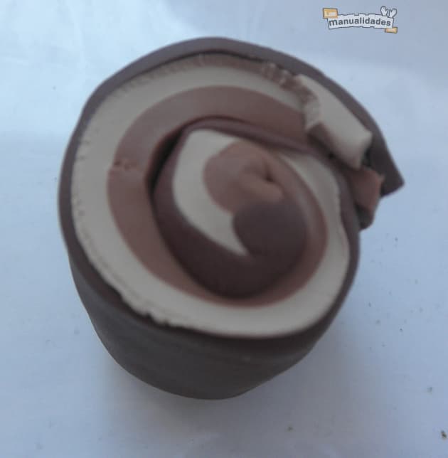 Esto es una espiral en bastón o cane como se llama en inglés. Una vez hecha, hay que amasarla y reducirla para obtener las lonchitas del tamaño deseado.
