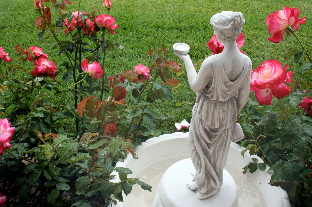 Dependiendo del tamaño de nuestro jardín podemos poner una estatua grande o pequeña. Muchas vienen con luz o son fuentes de agua. Algunas personas coleccionan figuras para jardín como duendes, hadas, casitas y demás figuritas fantásticas. Pero es importante no abusar de las estatuas pues nuestro jardín puede verse desfavorecido. Las estatuas que están entre la maleza le otorgan antigüedad y misterio a la decoración de un jardín.