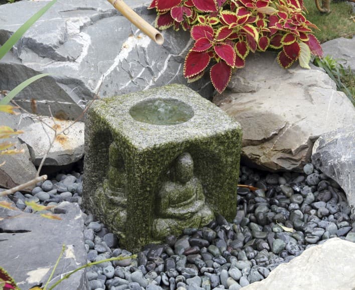 Las fuentes para adornar un jardín son un clásico. Ya sean de cerámica, piedra o cemento, las fuentes son llamativas y elegantes. Pero debemos asegurarnos de que los niños pequeños o mascotas no se acerquen mucho a ella o podrían accidentarse. Al instalarla hay que verificar que no desperdicie agua.