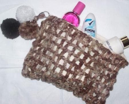 Después se hace la malla de lana (yo en este caso la hice de ganchillo), del mismo tamaño que la bolsa de tela que hayamos hecho y se cose por encima de la bolsa.