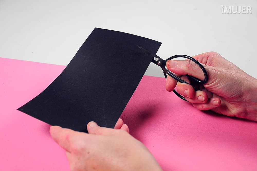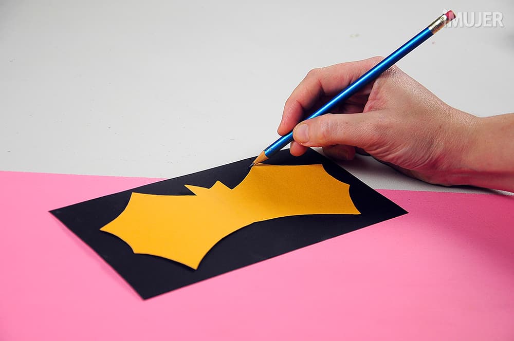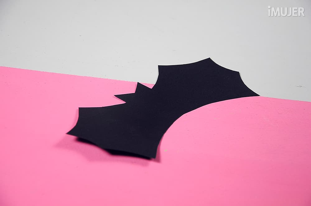 Dibuja o copia un murciélago en la goma eva negra y luego recórtalo.