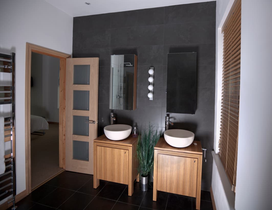 En el cuarto de baño, la pizarra aporta un aspecto moderno y natural, eligiendo los sanitarios confeccionados con este material. Con la amplia gama de formas y tonalidades, la pizarra se integra perfectamente en el cuarto de baño, aportando un toque totalmente original, a la vez que limpio y elegante.