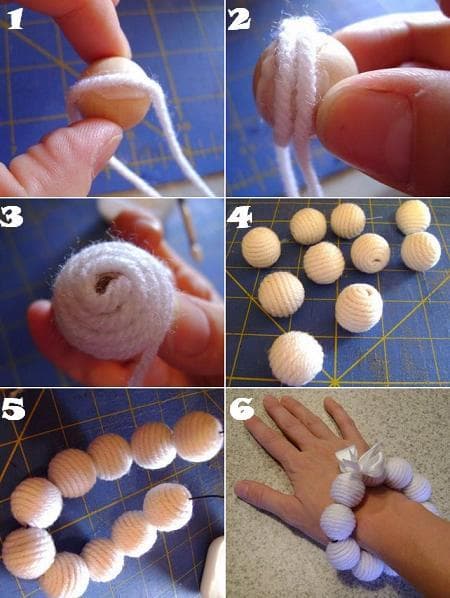 Los accesorios siempre son la mejor opción para dar vida a un aburrido o simple atuendo. Puedes optar por cuantos quieras y lo mejor de todo es que muchos de ellos los puedes hacer tu misma. Como esta original pulsera con bolas forradas en lana. Un trabajo realmente simple pero que será el complemento perfecto.