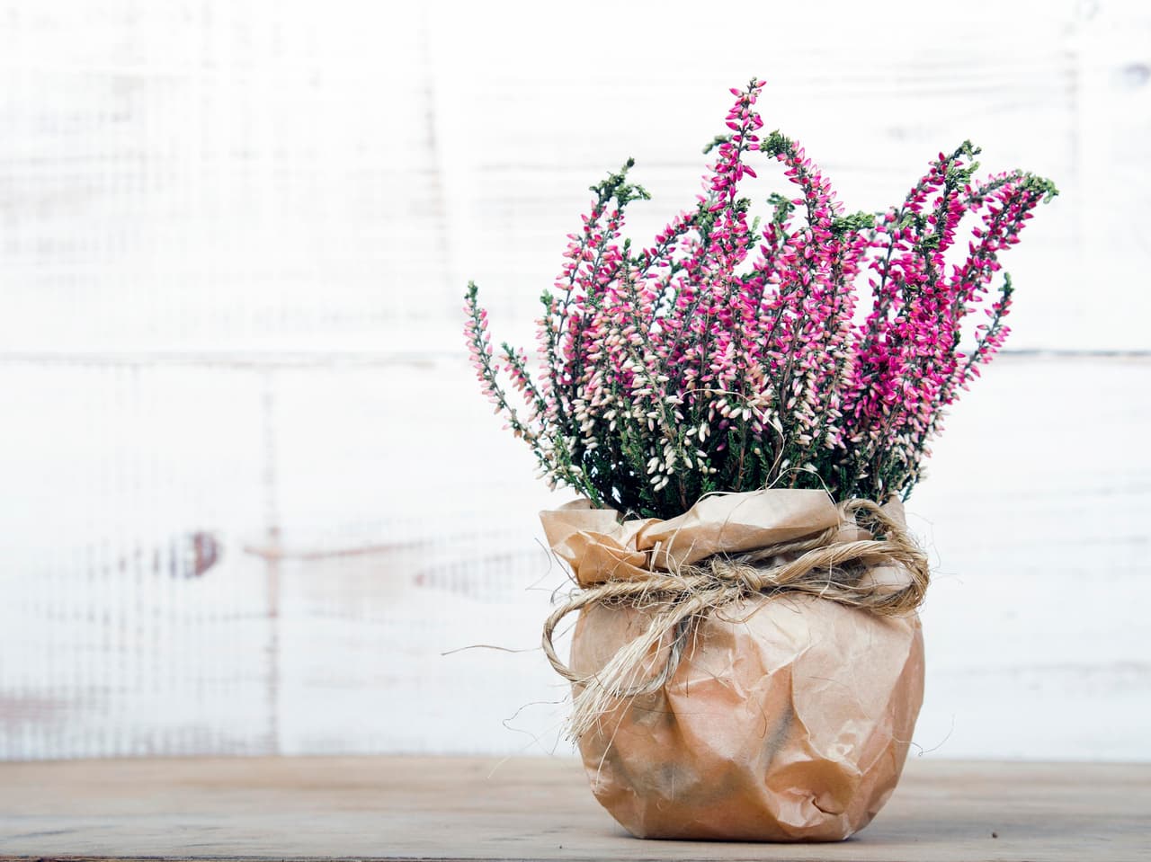 El estilo rústico sin duda le dará un toque especial a tu jardín. Puedes utilizar cualquier maceta y con un papel marrón o con una tela de saco, puedes cubrir la maceta y luego utiliza una cinta de soga alrededor de la maceta. El estilo rústico siempre va muy bien con el verdor de las plantas.