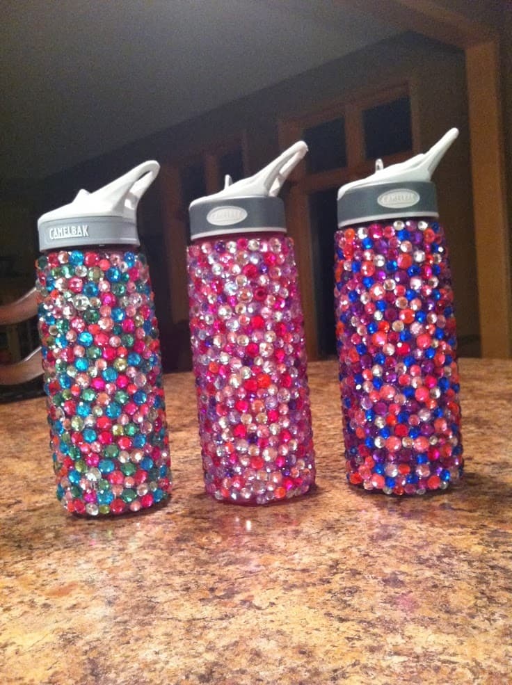 Llena tu botella de diamantes de imitación, ¡verás que genial se ve! Sin dudas, esto le dará brillo a tu día.