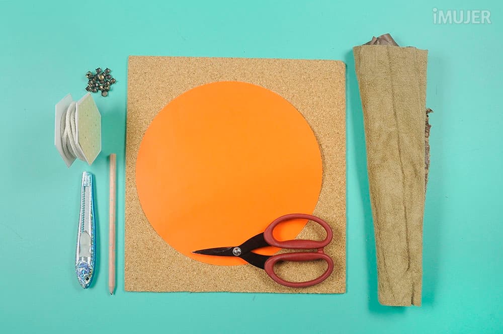 Luego, marca el contorno del círculo sobre la plancha de MDF y recorta con el cúter por la línea.