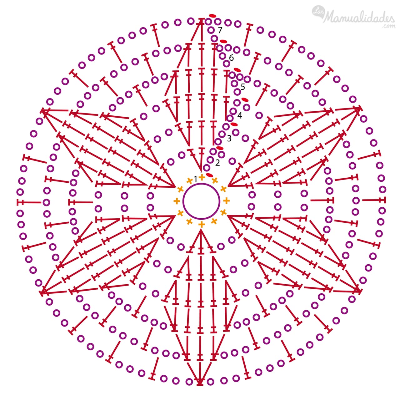 Este patrón redondo de crochet es ideal para esto, pues presenta puntos sencillos que puedes realizar sin problemas si ya tienes algo de experiencia pero, aún así, es original y muy estético.