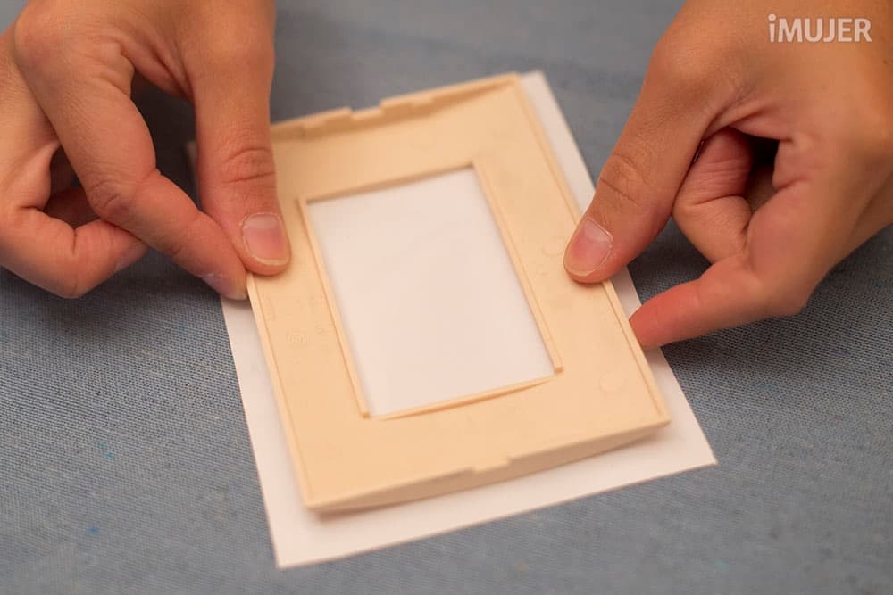 Mide la tapa de luz en el adhesivo y recorta un rectángulo de mayor superficie.