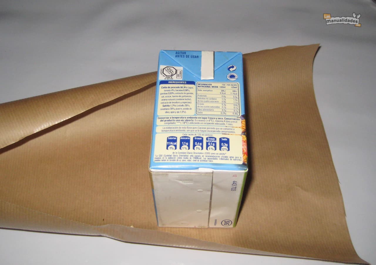 Para formar las bolsas con el papel puedes ayudarte de cualquier envase que tenga el tamaño adecuado.
