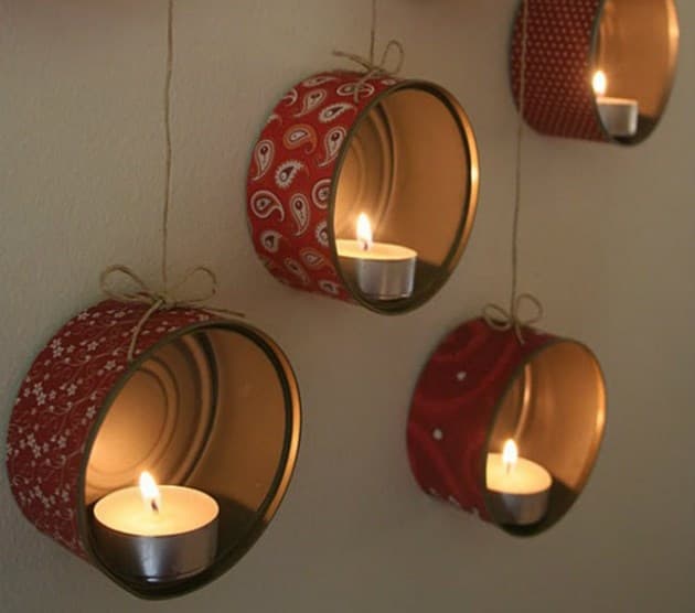 ¡Y listo! Ya tienes un bonito candelabro para lucir, como siempre que se manipulan elementos con fuego vigílalo siempre, no lo dejes encendido si vas a salir de la casa y revisa que la parte superior de las latas no se caliente demasiado antes de poner todas las velas juntas.