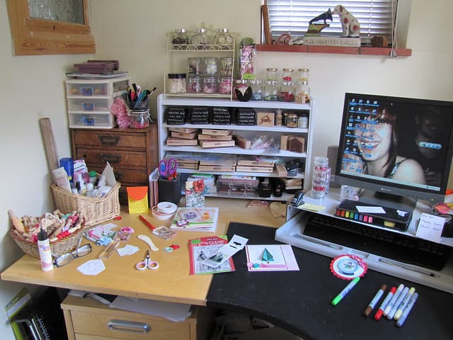 Este es un consejo con utilidad a la hora de inspirarte, y va ligado al anterior. Si almacenas tus materiales en recipientes transparentes y los ordenas por color, lograrás una decoración más bella en tu taller y al mismo tiempo lograrás una mayor inspiración para hacer cosas bellas con tus manos.