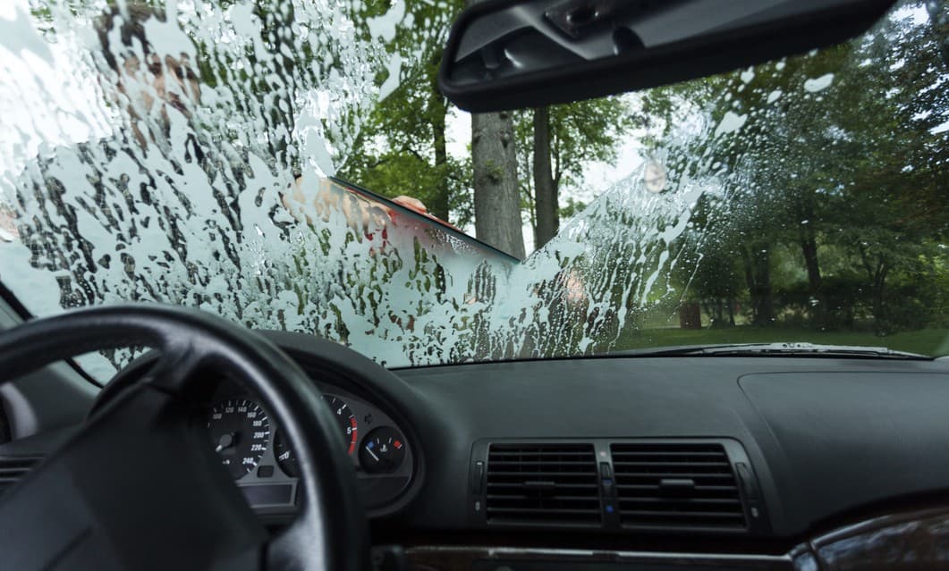 Aunque sin duda es una molestia, por lo menos el jabón limpia las ventanas del coche. Utiliza mucha agua y un cepillo suave, o una almohadilla no abrasiva para proteger el vidrio.
