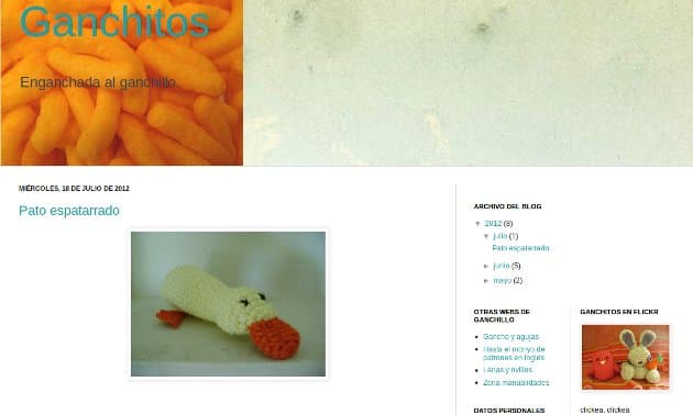 Ganchitos es un blog dedicado casí en su totalidad al mundo de las manualidades a crochet. En él, es posible encontrar diferentes animales, adornos para el hogar, diseños originales y miles de ideas realmente adorables.