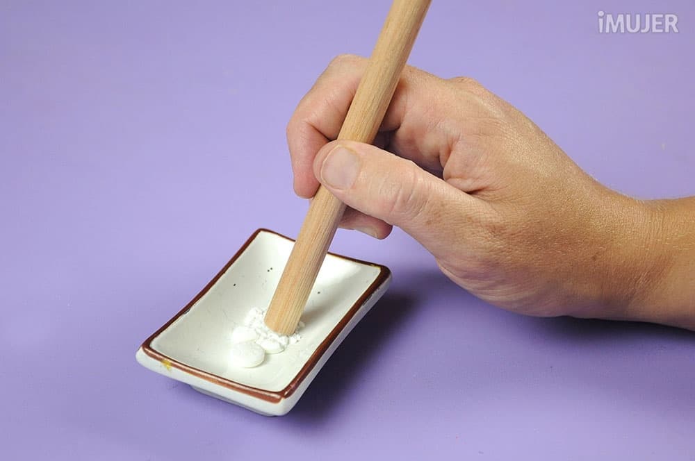 Agrega un poco de agua a las aspirinas para formar una pasta. Utiliza una cucharada o espátula para revolver.