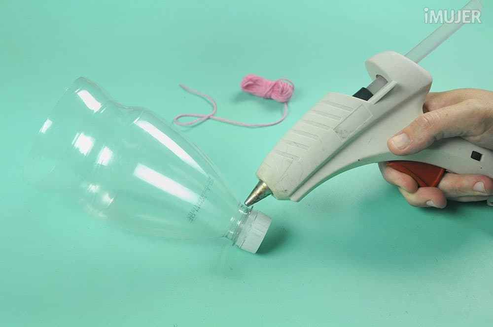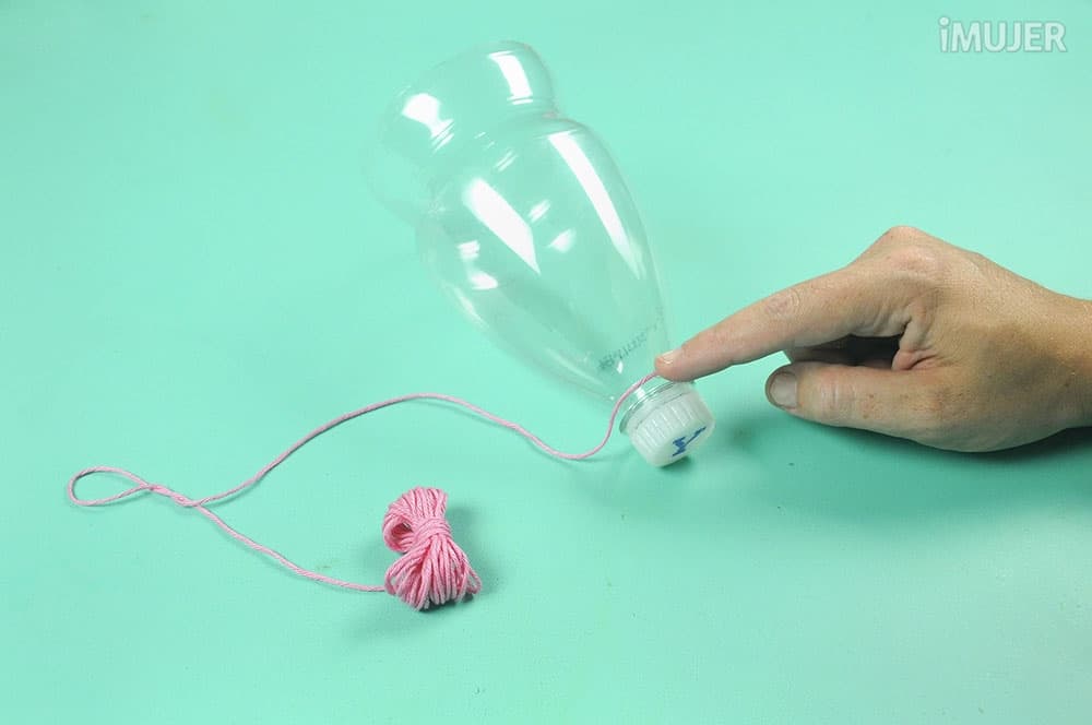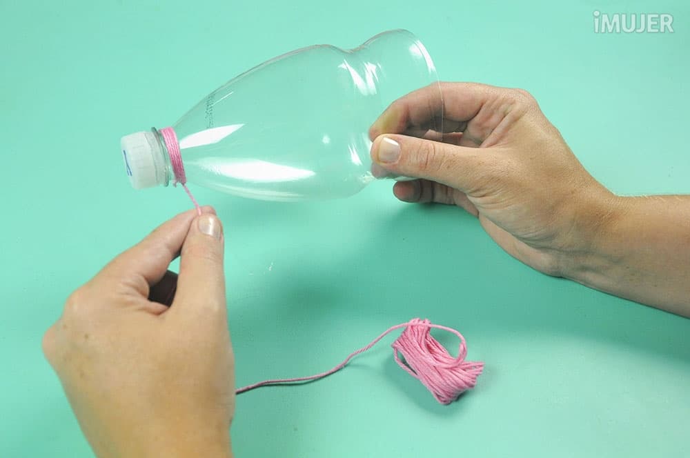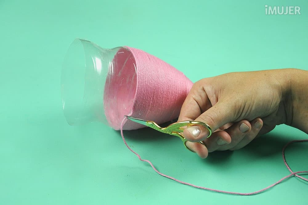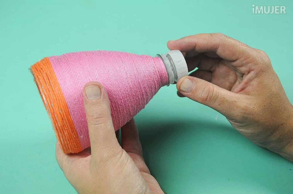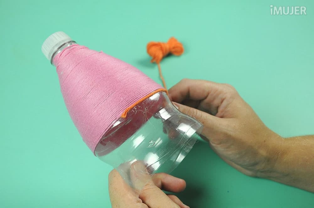 Enrolla la lana alrededor de la botella de modo que quede bien firme hasta...