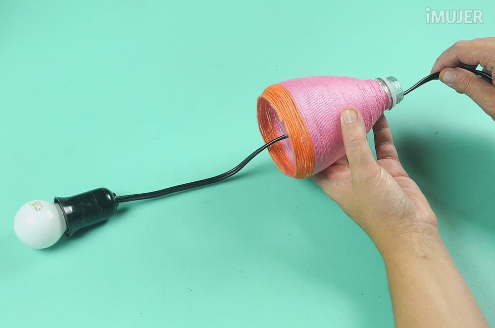 Para finalizar solo tienes que conectar a la corriente eléctrica el cableado y encender la luz. Tu original lámpara iluminará tus próximas ideas.
