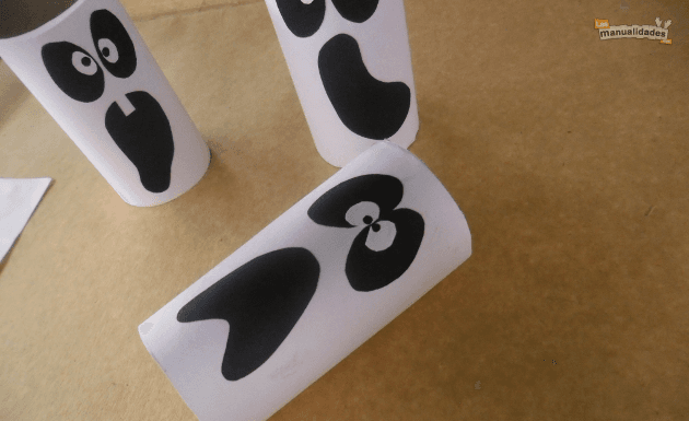 Y haciendo otras formas de boca, puedes hacer otros fantasmitas similares... ¡con cara de susto!