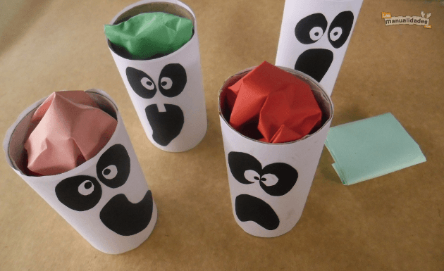 ¿Te ha gustado? ¡Espero que sí! Así que no dejes de juntar los tubos de rollos para hacer souvenirs de Halloween para regalarles golosinas a tus amigos.
