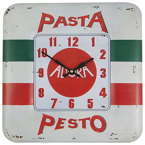 Si eres un fiel admirador de la cultura italiana, este reloj es para ti. Y es que con él, podrás pintar tu cocina con los colores típicos de este país. Además, podrás empezar a aprender tus primeras palabras de italiano: "Pasta, allora, pesto".