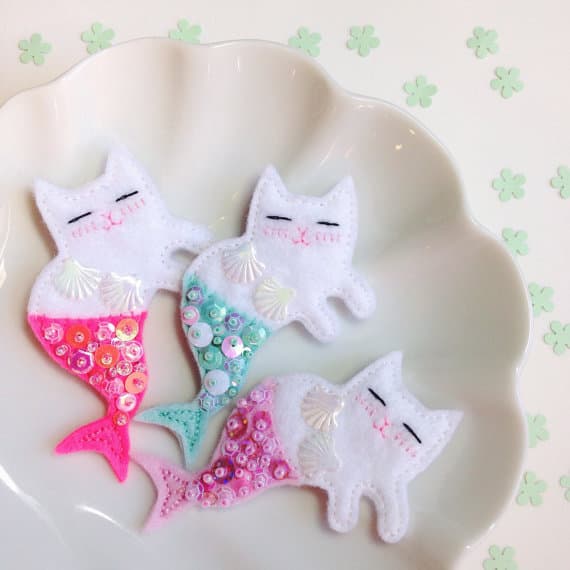 ¡Qué ternura estos broches! Son muy delicados estos gatitos sirena.