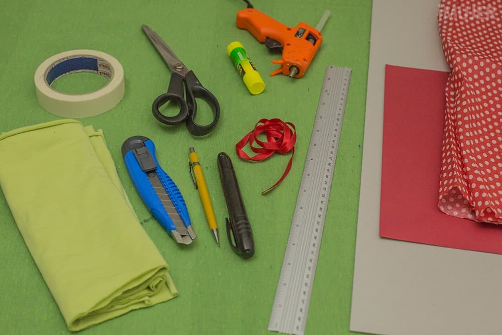 Forra todo con el papel de diseño, pega con el pegamento en barra.