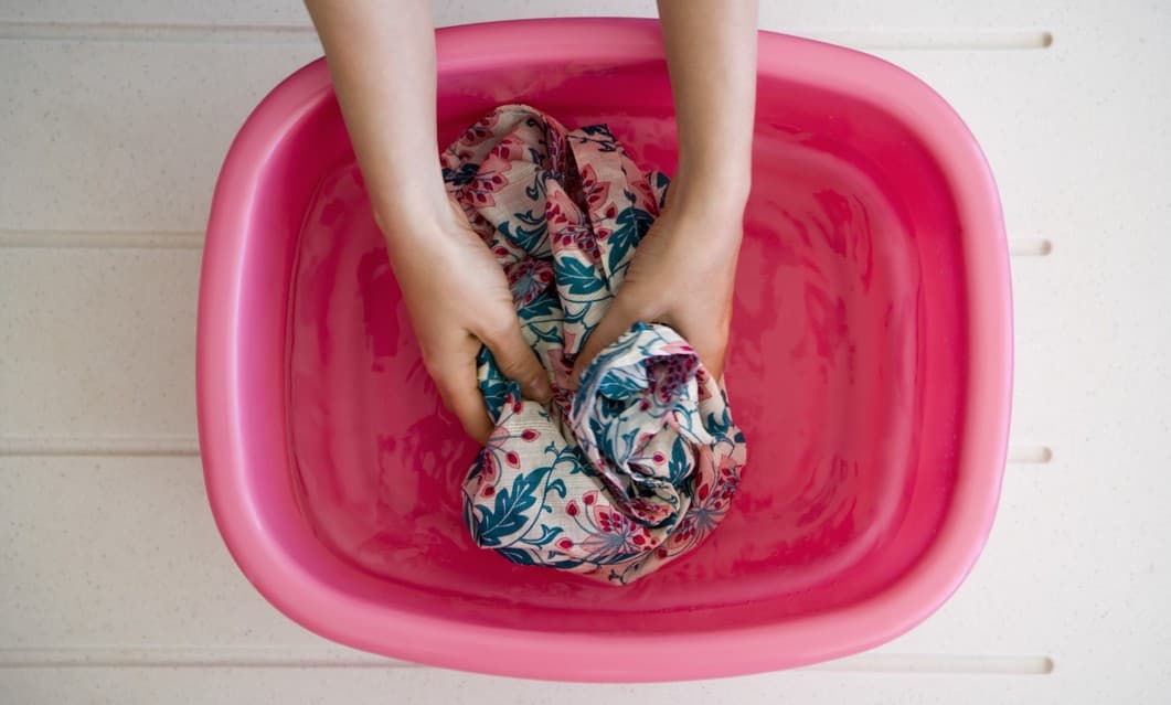 Si nuestras prendas no pueden resistir el cloro o blanqueadores lo mejor es hacer una mezcla casera de agua oxigenada con un volumen de 20% o menor y agua simple. Si nuestro peróxido es muy fuerte lo mejor es usar solo una parte por nueve de agua simple.