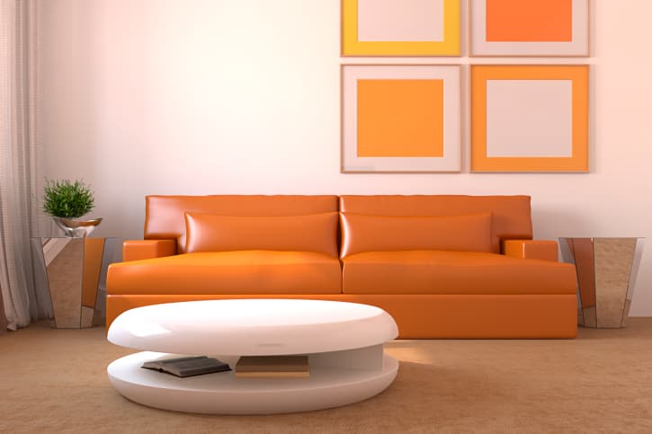 Si no te atreves a las paredes en colores tan brillantes no tienes que resistirte a usar el color. Aún en una habitación enteramente blanca los muebles pueden cobrar vida. Opta por piezas novedosas y diferentes entre si, siempre en tonos de naranja. Te aseguro que crearás un estilo muy divertido.