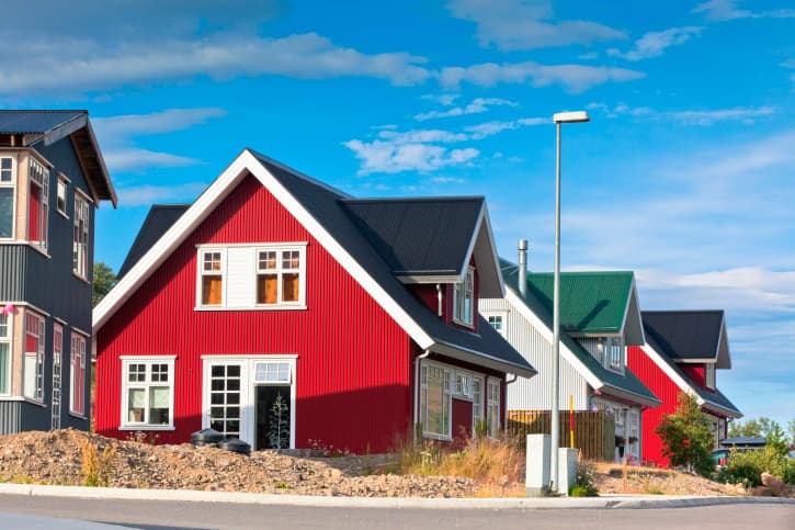 En la imagen inferior vemos como los techos pintados de colores fuertes cambian totalmente la visión panorámica de un barrio. Esta fotografía área de una ciudad de Islandia muestra un importante despliegue de color:
