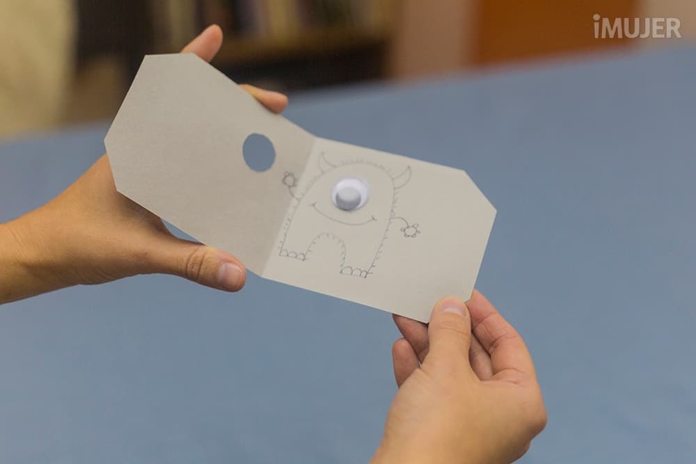 Por último, dibuja un monstruo dentro de la tarjeta, alrededor del ojo.