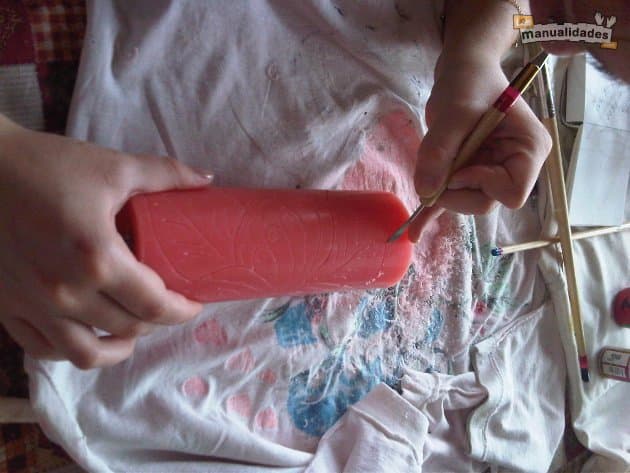 Con el kemper, repasa el dibujo que habías transferido al velón.